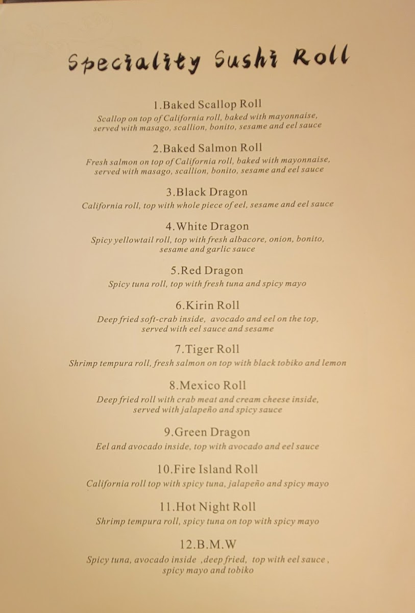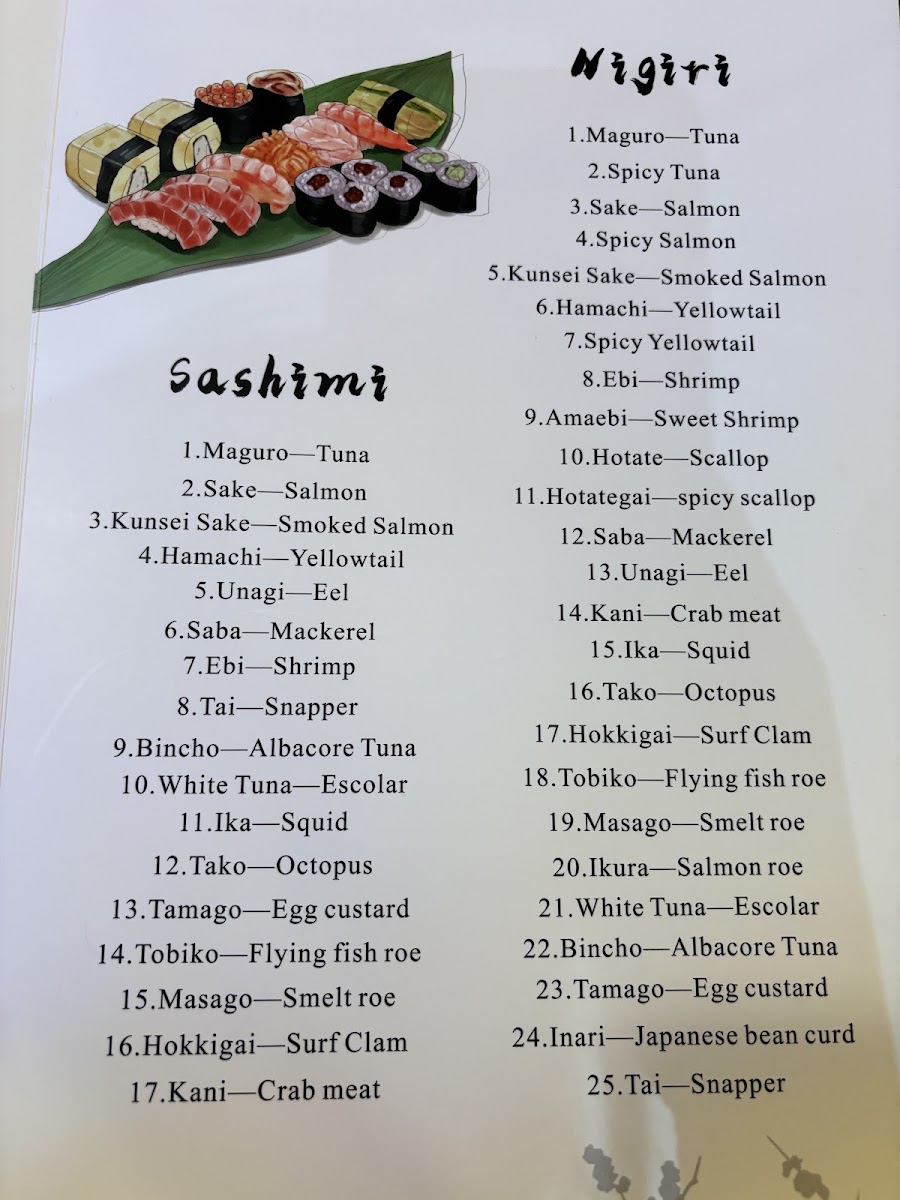 The overall menu fits well with a leisurely evening or casual gathering, offering something to suit both sushi aficionados and newcomers alike. Whether sharing plates or savoring individual favorites, the experience encourages enjoying food at a comfortable pace in a clean, friendly environment.